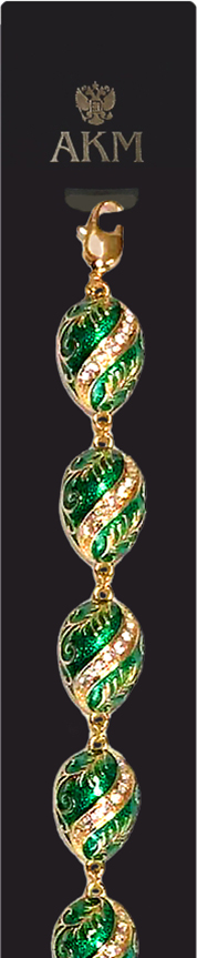 Браслет отличается стильным плетеным узором, который придает украшению особую текстуру и шарм. Зеленый цвет эмали делает его ярким, но при этом универсальным аксессуаром, который прекрасно сочетается с любым стилем одежды.