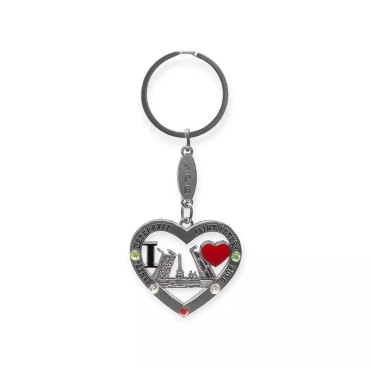 Брелок сердце фигурный эмаль стразы СПб Мосты