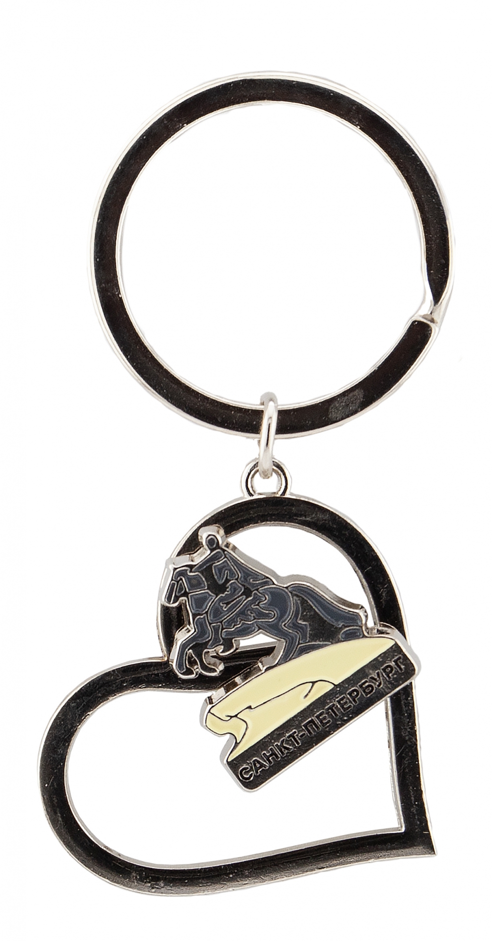Брелок сердце с движ фигуркой СПб Медный серебро