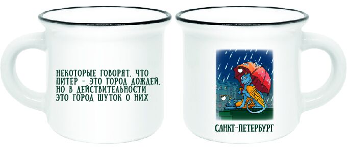 Кружка фарфор малая матовая СПб Грифон под зонтом белая