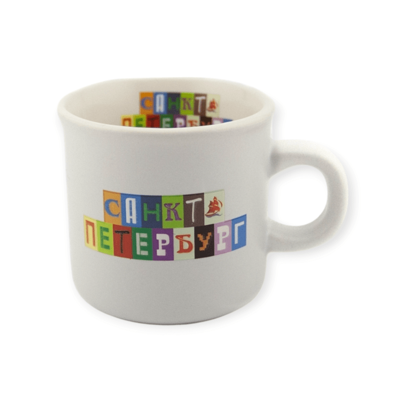 Кружка фарфор малая матовая СПб Объемные буквы белая