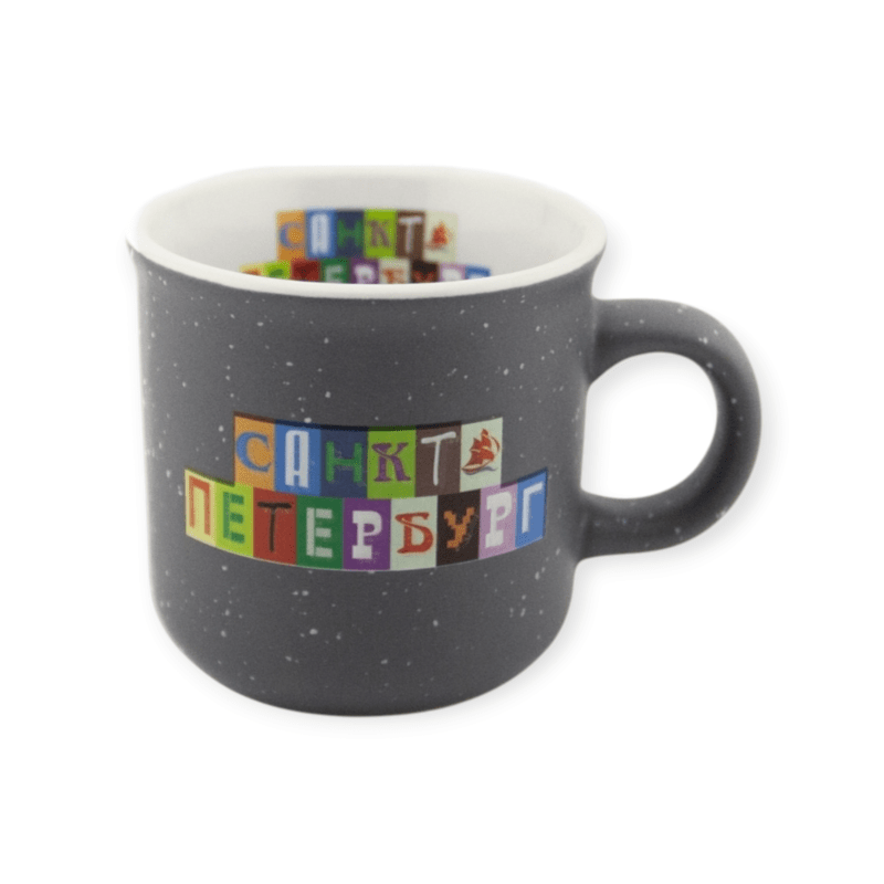 Кружка фарфор малая матовая СПб Объемные буквы серая