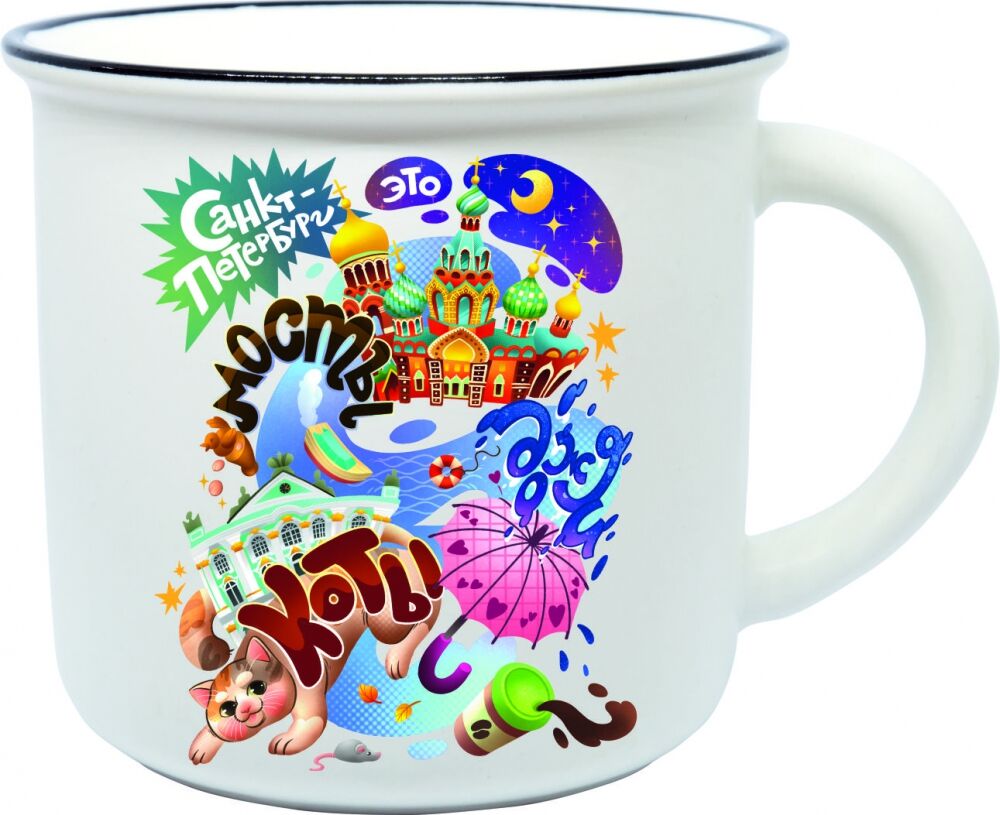 Кружка фарфор матовая прямая СПб Мосты коты дожди