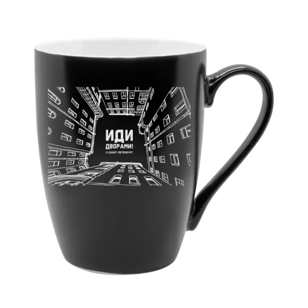 Кружка фарфор матовая СПб Иди дворами черная