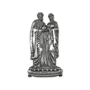 Магнит металл Cтразы фигурка Памятник Святым Петру и Февронии античное олово