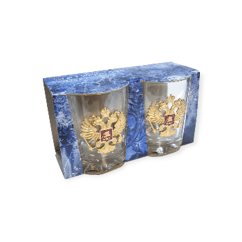 Набор стаканов с гербом России — это изысканный комплект из двух предметов, который станет достойным украшением любого стола. Классический дизайн с изображением государственного герба придает набору особую торжественность и значимость.