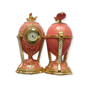 Это очаровательное яйцо станет прекрасным дополнением к вашей пасхальной коллекции и будет радовать глаз своим нежным дизайном. Розовый цвет и милый образ курицы создают особую атмосферу праздника и уюта, а встроенный часовой механизм делает сувенир еще более практичным и полезным.