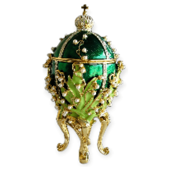 Изысканное пасхальное яйцо украшено нежным рисунком ландышей, что делает его особенным элементом праздничного декора. Зеленый цвет символизирует пробуждение природы и весеннее обновление.
