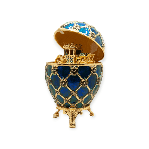 Музыкальное пасхальное яйцо «С каретой» в синем цвете